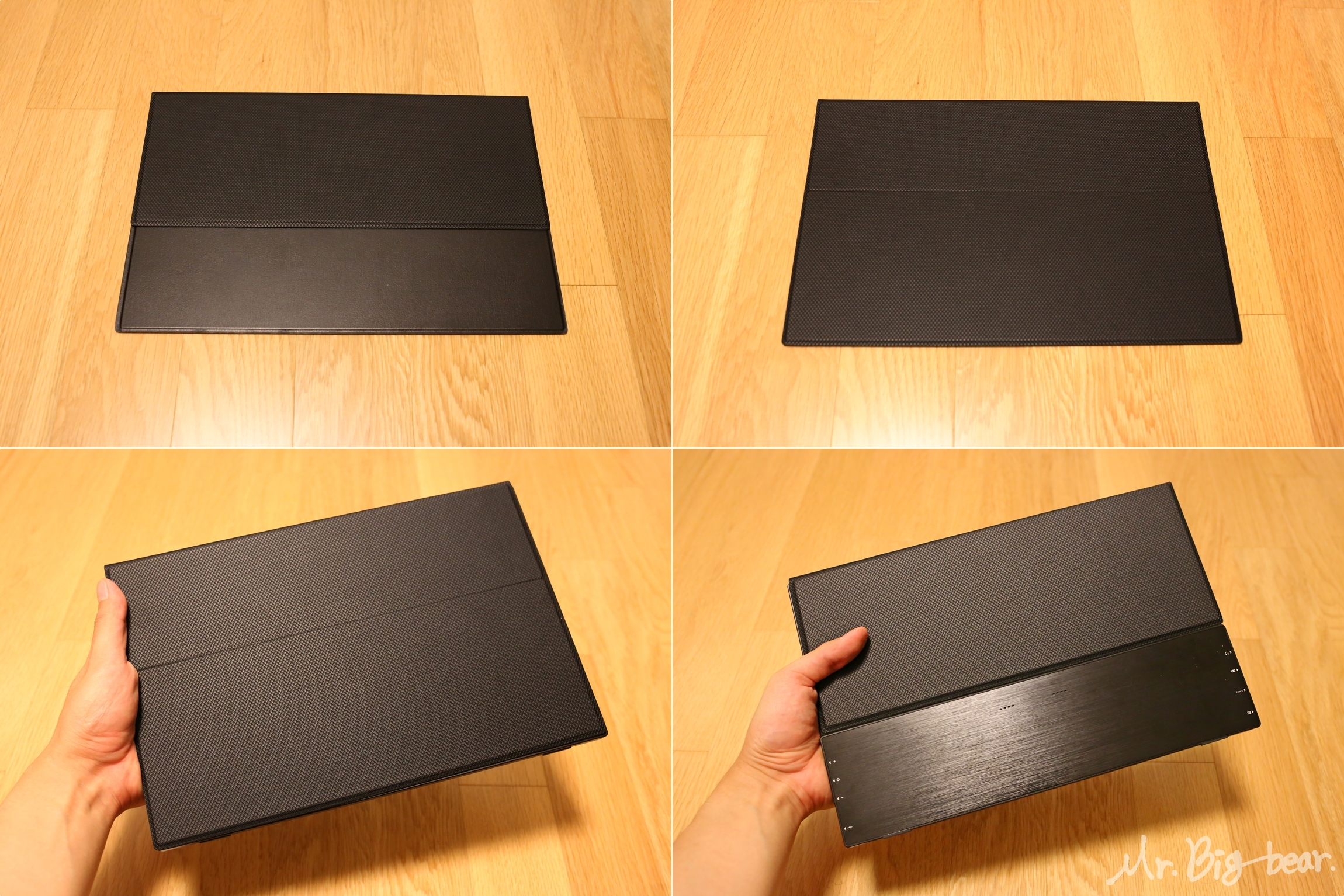 모니터를 태블릿PC 처럼 세워서 사용할때는 커버를 살짝 벌려서 세워주면 됩니다. 한번 더 언급하지만, 태블릿PC의 마그네틱 케이스 같은 견고함은 없으므로 그냥 세울 수 있다는 정도라고 생각하는게 맞을 것 같습니다.