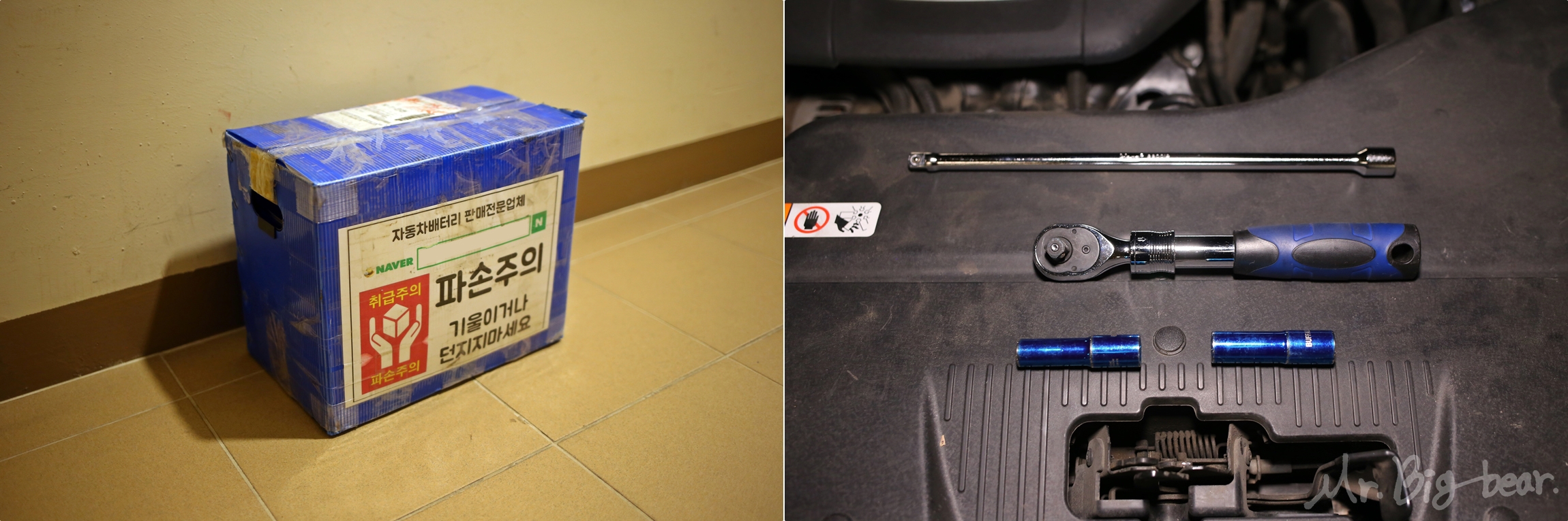 자동차 배터리 교체라고 검색하면 택배로 새 배터리를 받아 셀프로 장착하고, 기존 배터리는 반납하는 조건으로 훨씬 저렴하게 교체가 가능했습니다. 주문하기전 델코냐 로케트냐의 고민이 든다면 그냥 좀 더 끌리는 이름으로 아무거나 주문해도 될 정도로 중요한 고민이 아닙니다. 필요한 공구는 반납하는 조건으로 같이 배달되므로 공구가 없어도 걱정할 필요 없습니다. 사진속 공구는 제 공구인데 개인적으로 준비하신다면 참고하시기 바랍니다.