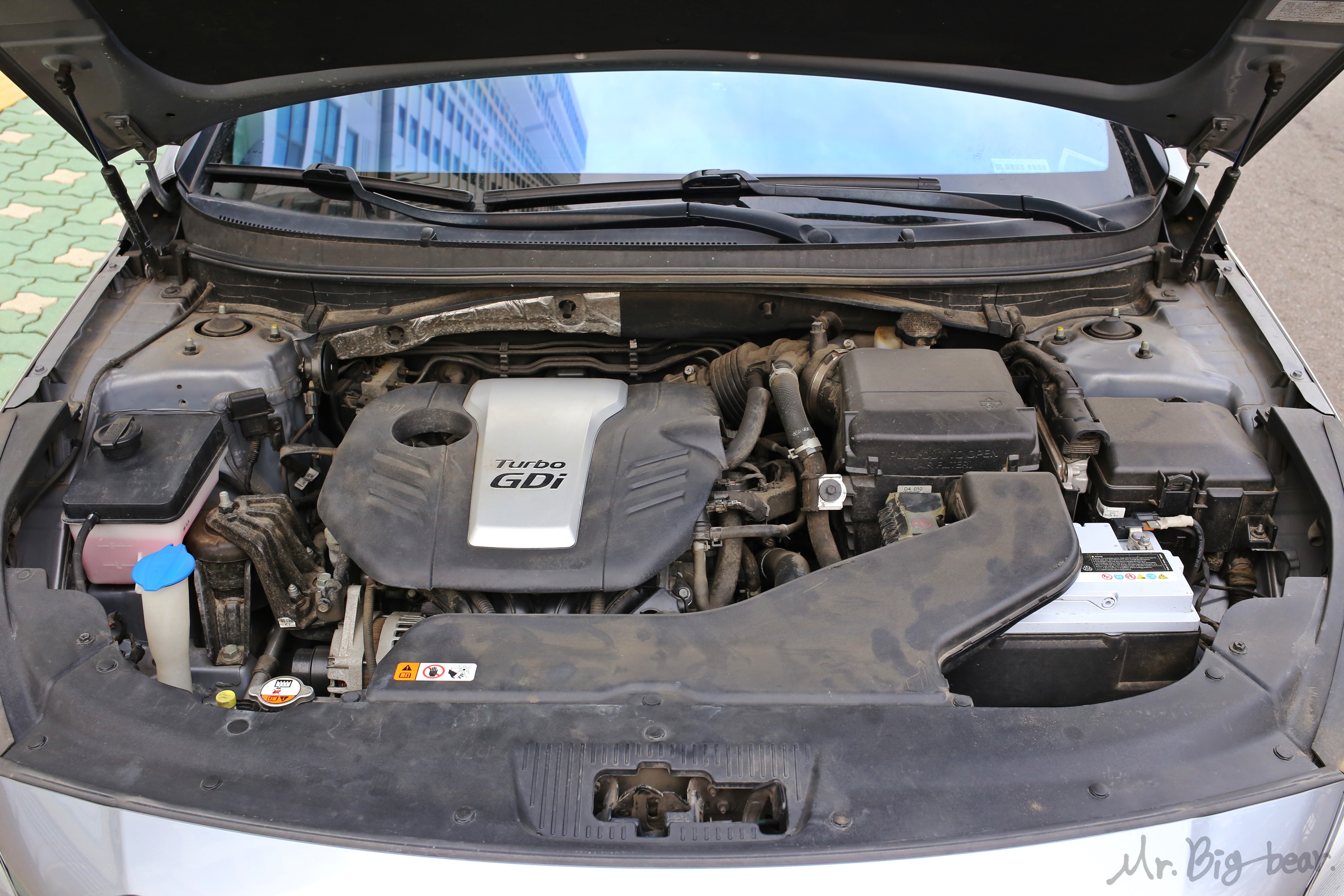 가장 왼쪽에 보이는 통이 냉각수 리저버 탱크인데, 2016년에 출고한 LF쏘나타에는 초록색 부동액이 들어있었습니다. 냉각수가 L(Low) 레벨까지 낮아지길래 직접 보충하려고 알아보니, 이제 초록색 순정 냉각수는 쉽게 구매할 수 없더군요. 성분은 동일하고 색상만 다르다는 설명에 그냥 분홍색 신제품으로 보충하는 분들도 계시는데, 초록색과 분홍색이 섞여 검정에 가까운 갈색이 되버려서 오염 정도를 파악할 수 없게 되었다는 용감한 차주분들의 경험담이 많았습니다.