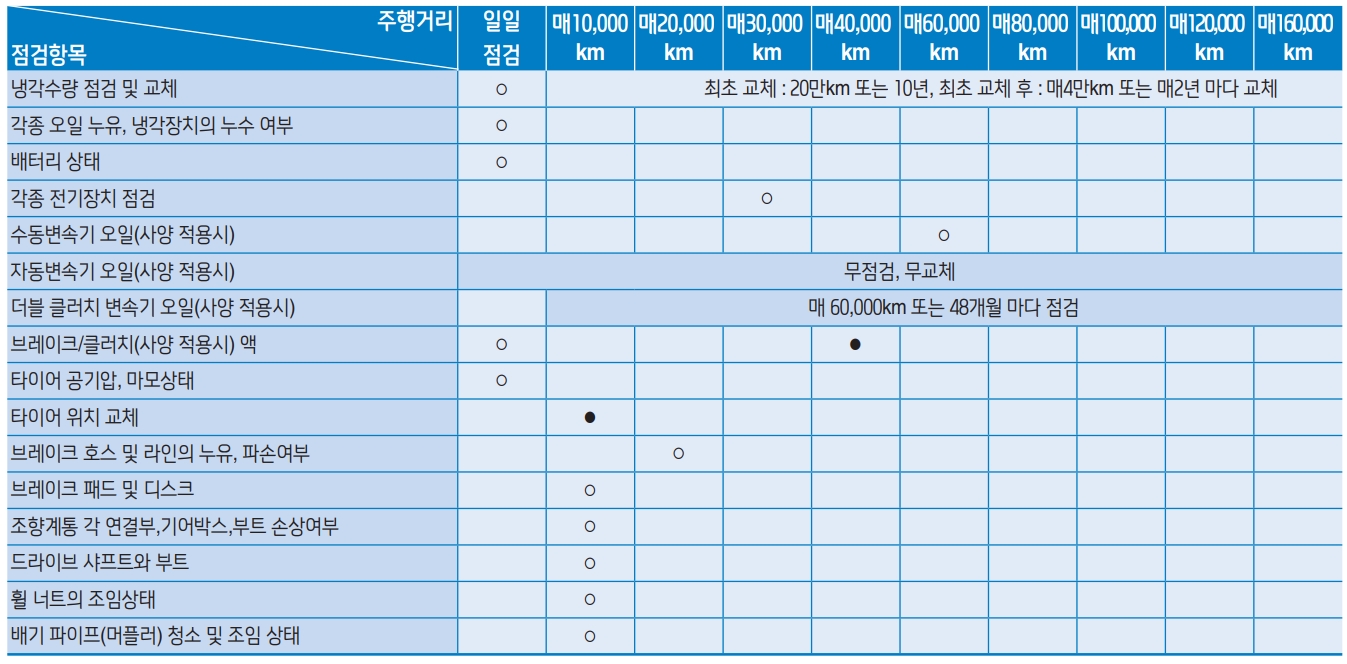 채 10만km가 되지 않은 차량을 가지고가니 블루핸즈에서 교체를 만류하시더군요. 너무 이르다고, 굳이 교체할 필요가 있냐는 말씀에 색상이 바뀌어서 초록색으로 구매해서 셀프 보충하기 어려운 점을 말씀드렸더니, 흔쾌히 해주셨습니다. 혹시 이 글을 읽고 블루핸즈에 방문했는데 거절당하신다면 제 핑계를 써먹으시면 되겠습니다.