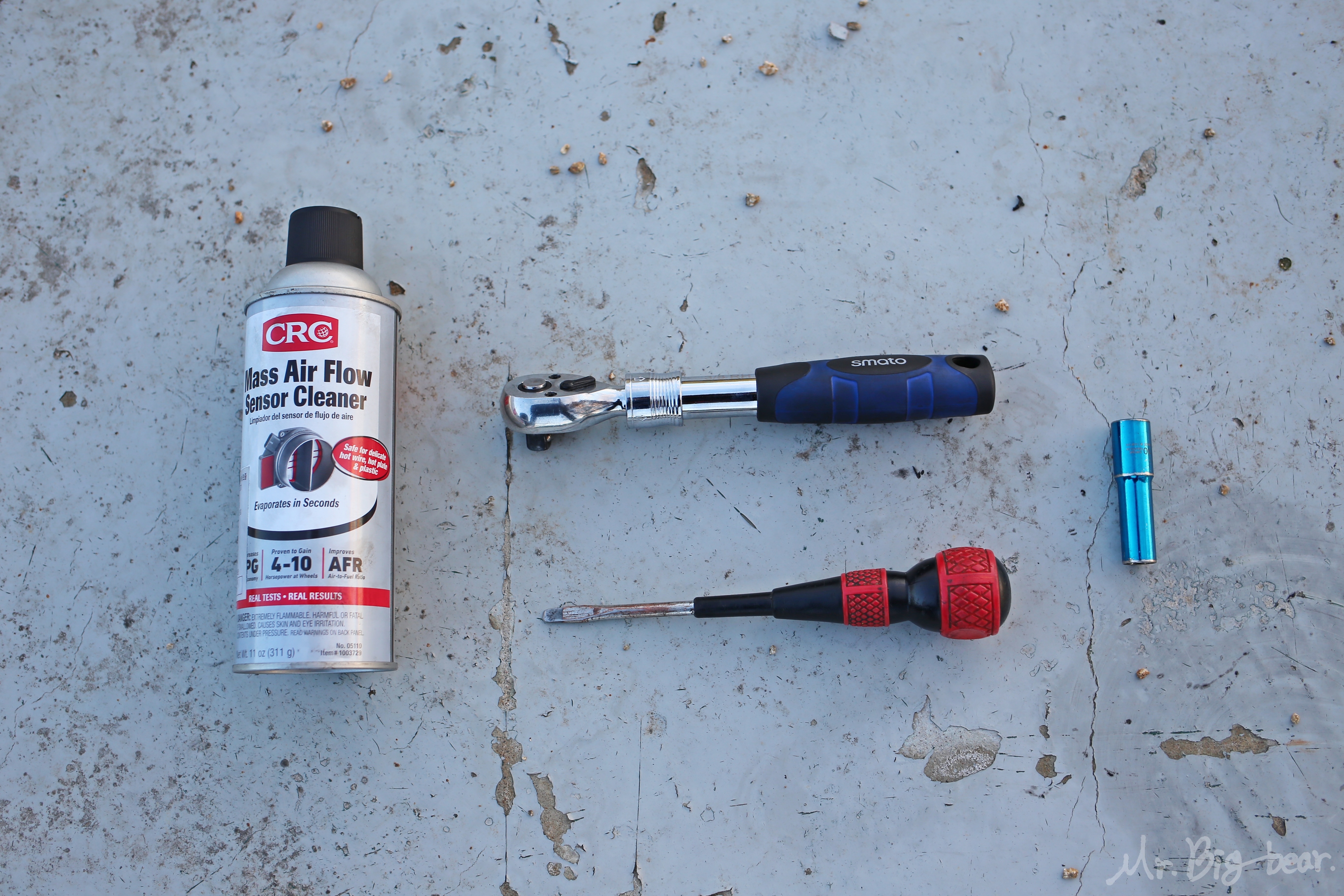 에어플로우 센서 세척은 엔진룸 작업임에도 많은 공구가 필요하지 않습니다. 배터리 (-)단자 및 센서 탈거를 위한 10mm 소켓과 3/8인치 라쳇이 전부입니다. DIY에서 일자 드라이버나 헤라 준비는 이제 국룰이고, 센서 세척제만 준비하시면 됩니다. 에어플로우센서 세척제라고 검색하시면 록타이트, 3M, CRC 등 다양한 제품들이 나오는데 제조사에 따른 차이는 없다고 봐도 무방해서 CRC 社 'Mass Air Flow Sensor Cleaner' 로 구매했습니다.