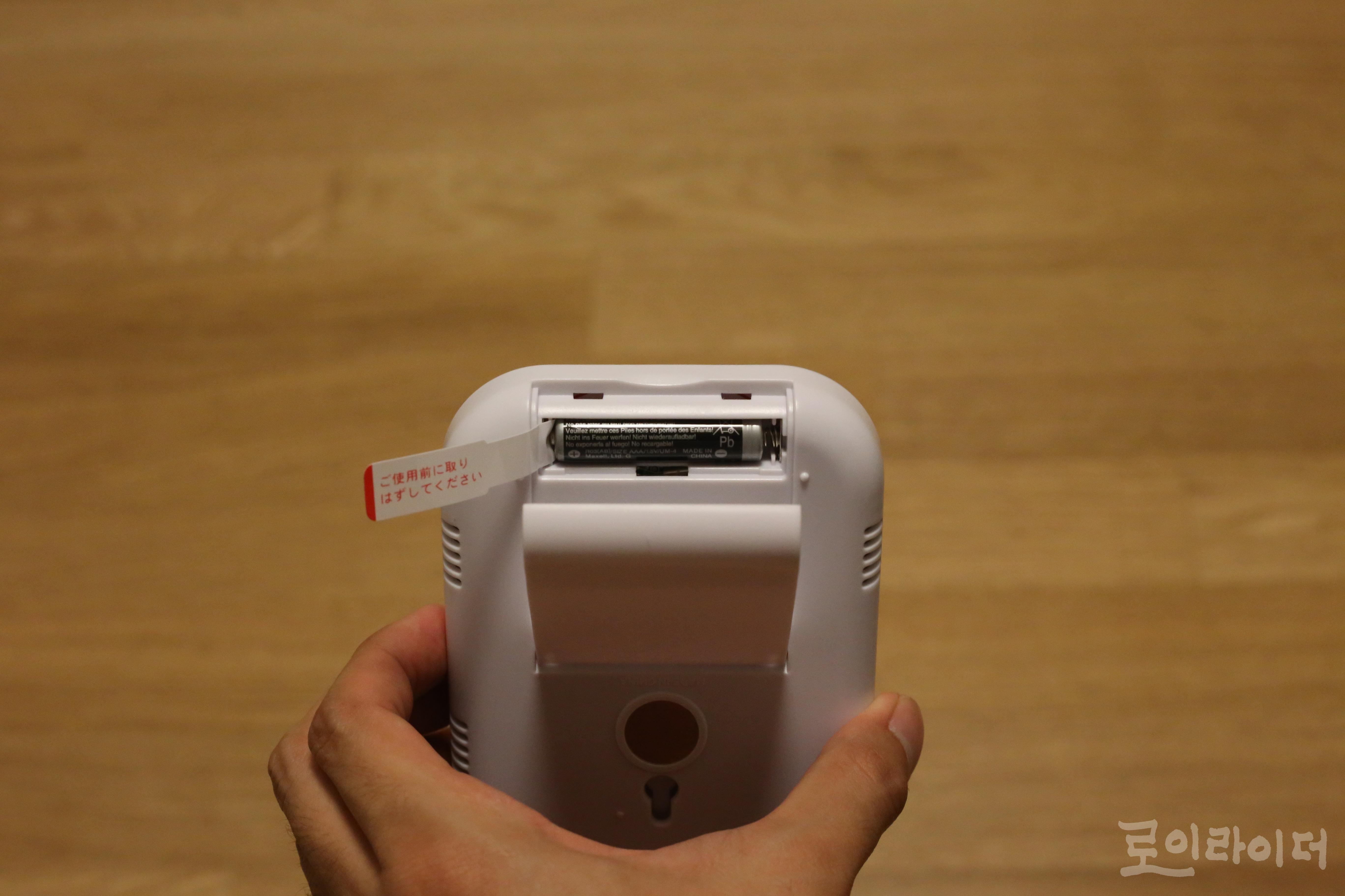 사용되는 배터리는 AAA 1개 입니다. 동전같이 생긴 리튬 건전지 대신 AAA를, 그것도 1개만 들어가도록 만든점도 마음에 듭니다. 참고로, 손바닥보다 작은 온습도계 주제에 AAA 배터리를 2개씩 사용하는 제품들도 꽤 있습니다.