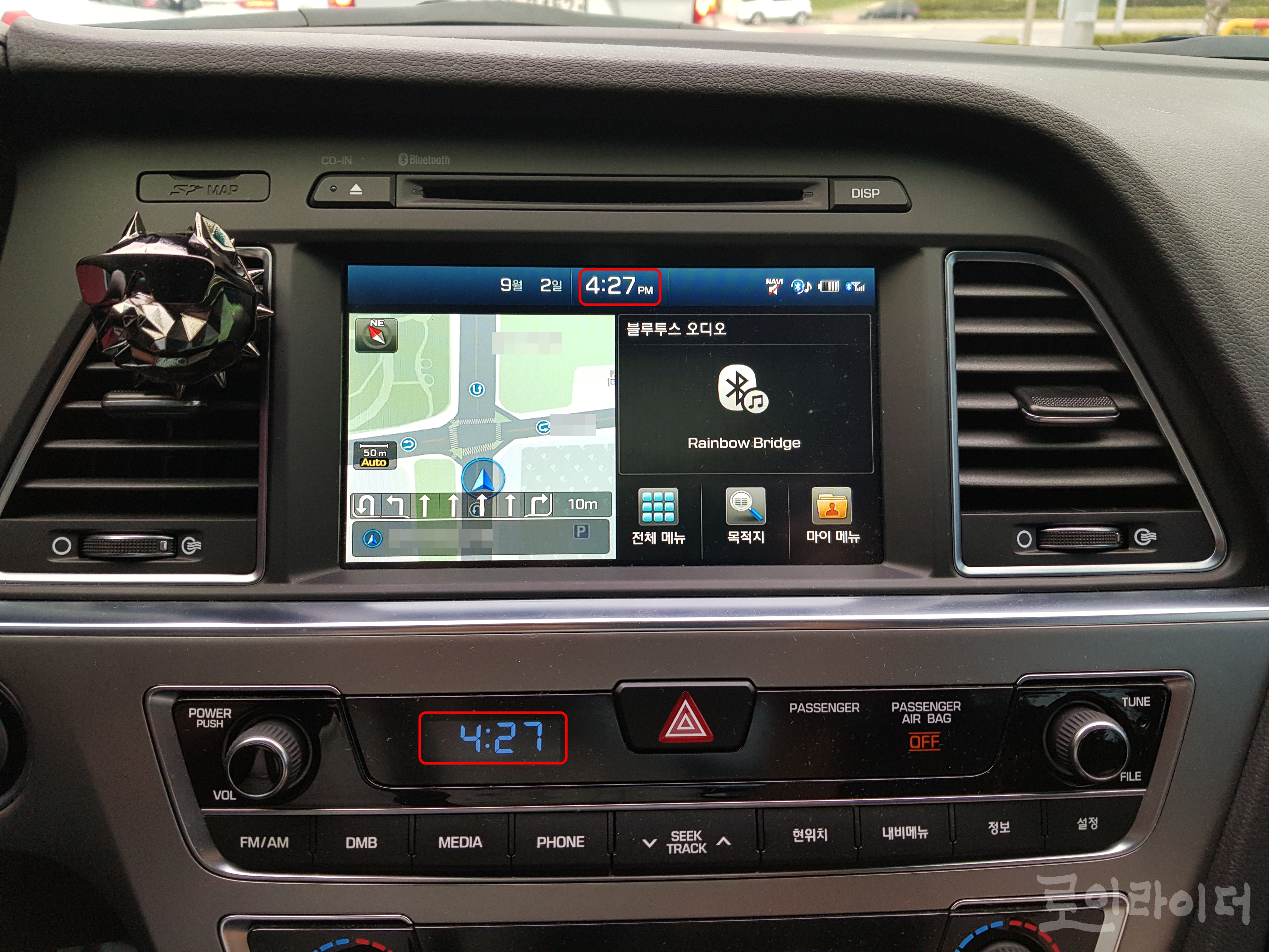 인고의 시간이 지나면 내비게이션이 재부팅되면서 고장났던 시계가 돌아옵니다. 역시나 센터페시아 디지털 시계도 동일한 시간을 보여줍니다. 별거 아닌데 오랜만에 보는 제대로된(?) 시계가 어찌나 반갑던지요.