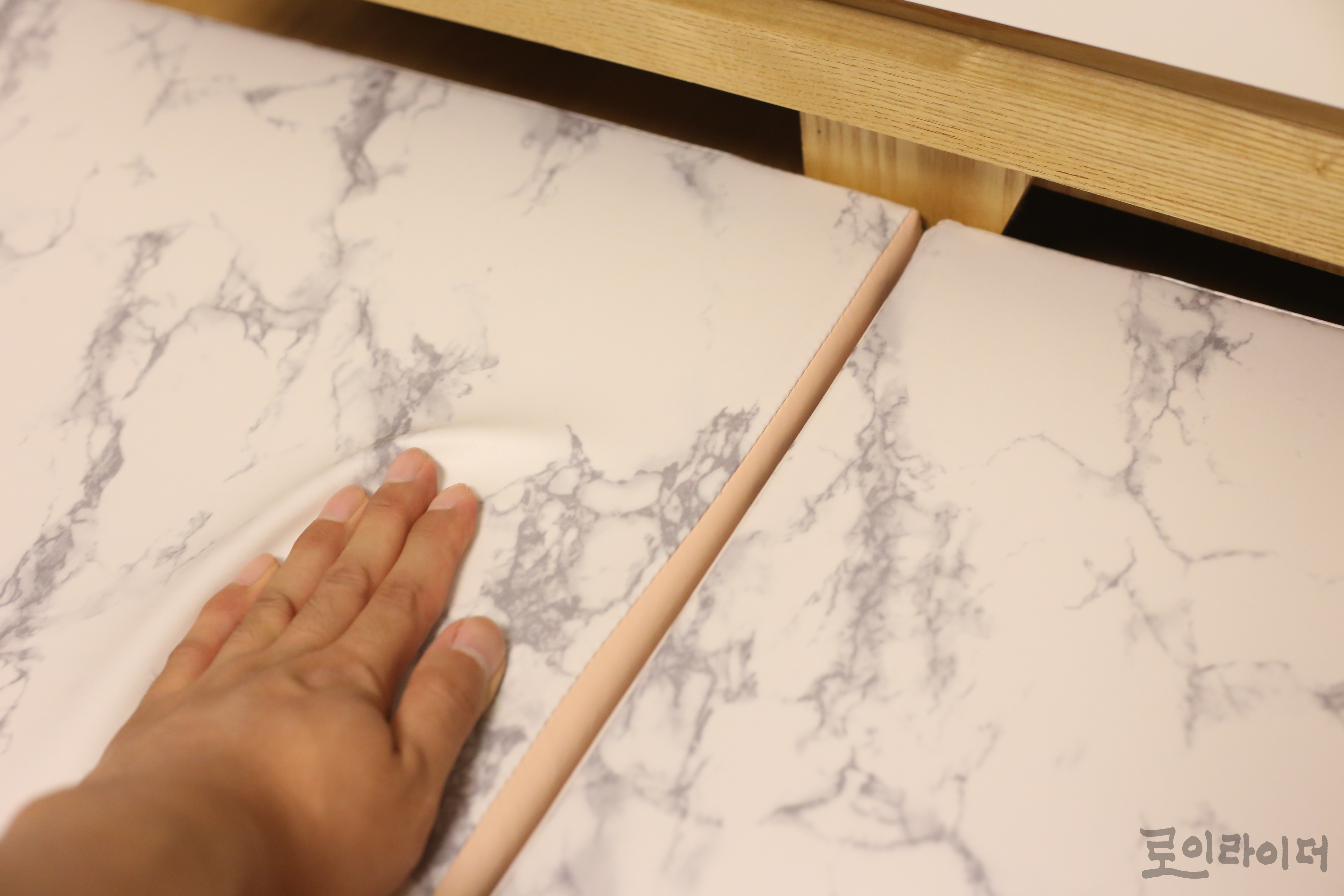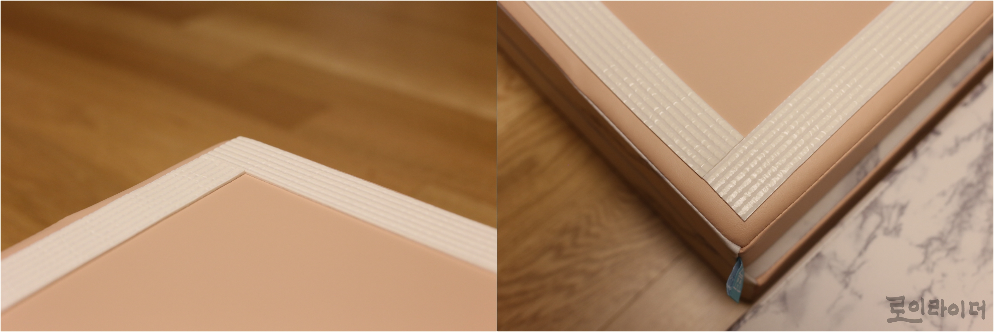 길이 약 15cm 정도로 모서리에 2개씩 붙였는데, 돌이켜보니 이것도 좀 과한것 같습니다. 총 길이가 3m 씩이나 되니까 넉넉하다고 막 쓰다가는 막판에 낭패를 볼 수 있으므로, 길이를 미리 계산하고 신중하게 사용하시기 바랍니다.