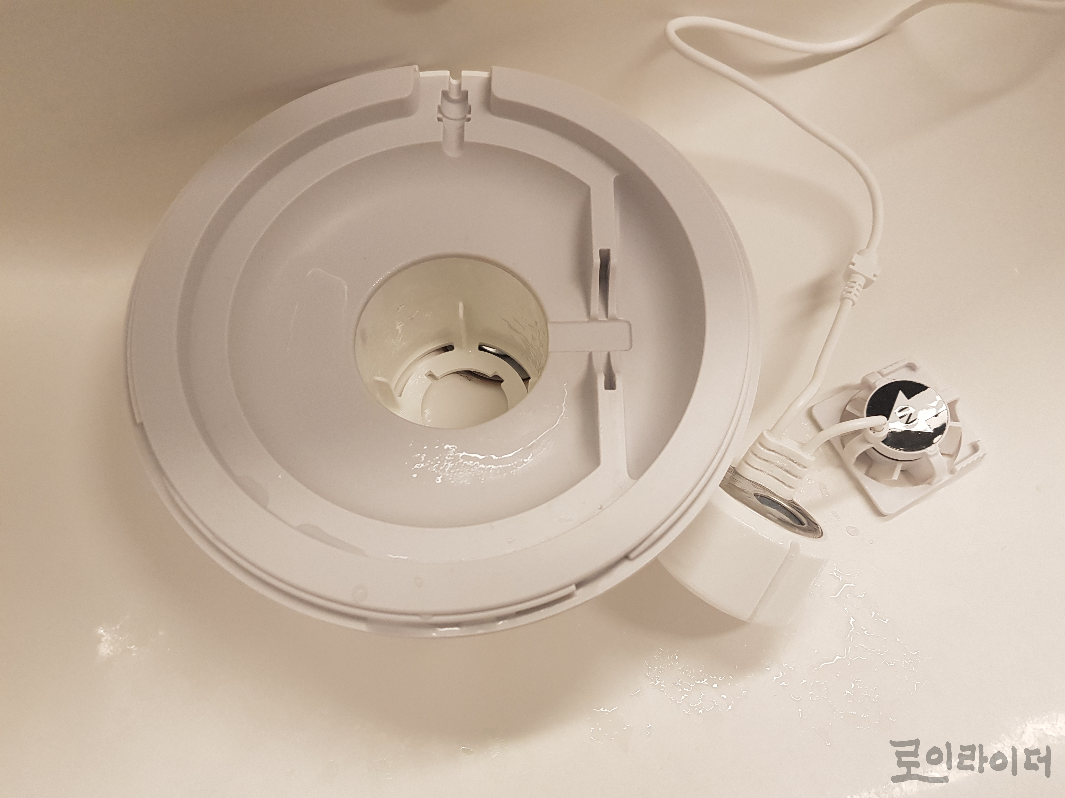 미로가습기의 진면목은 이렇게 더러워졌을때(?) 비로소 확인할 수 있습니다. 중통 내부에 가습엔진까지 통째로 분리되니까 세면대에 넣어놓고 흐르는 물에 맘껏 닦아줄 수 있습니다. 일단 아무 세척제도 쓰지 않고 흐르는 물에 칫솔로만 닦았는데도, 보이는 모든 부분을 다 닦을 수 있으니까 세제 없이도 깨끗하게 세척이 가능합니다. 청결한 가습기, 통세척이 가능한 가습기를 찾는다면 아직까지는 미로 가습기가 최고라고 추천할 수 있습니다.