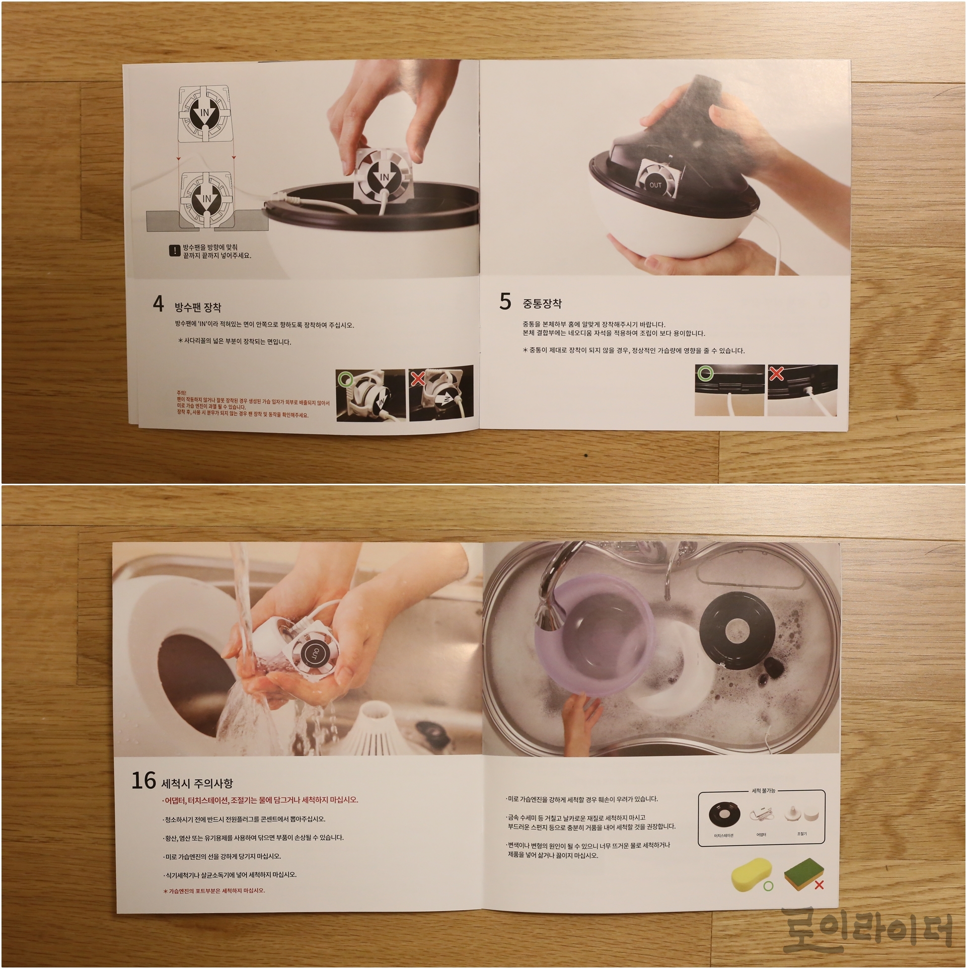 미로가습기 하면 내로라하는 장점이 '세척' 편의성입니다. 당연히 매뉴얼에도 세척시 주의사항에 대한 내용이 담겨있고, '부드러운 스펀지 사용, 너무 뜨거운 물은 지양하도록' 자칫 실수할법한 세척 방법에 대해서도 알려주고 있습니다. 세척이 왜 편리한지는 뒤에서 한번 더 다루겠습니다.