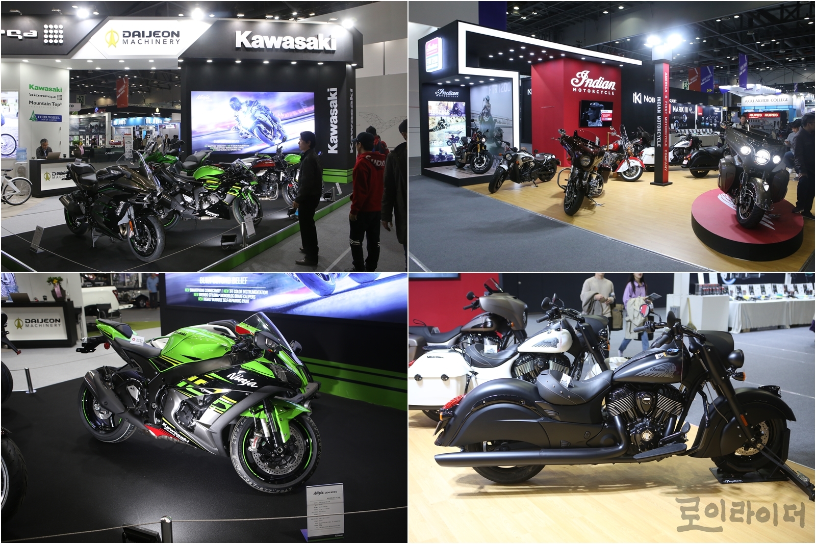 보통 전시장 입구쪽은 한산해서 (이륜)자동차 제조사들이 잘 위치하지 않았는데, 이번엔 두 바이크 브랜드가 자리잡고 있었습니다. 이제 두바퀴는 끊겠다는 결심을 한지가 오래되었는데, 인디언의 저 무광 모델이 제 마음을 또 흔들더군요. 모델명은 "치프 다크호스(썬더 블랙 스모크)" , 가격은 \33,500,000원. 제 LF 쏘나타 풀옵션보다 비싼 녀석이네요.