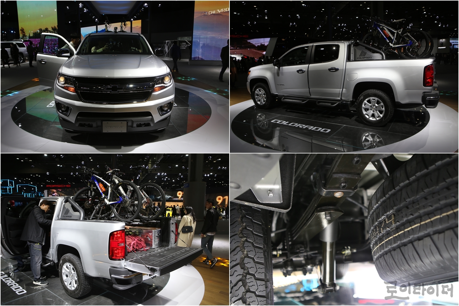 쉐보레 부스에서는 딱 이 모델 "COLORADO(콜로라도)" 만 자세히 보았습니다. 전설속의 명차 '크루즈' 처럼 혹시나 도로에서 보기힘든 모델이 될까 기회가 생긴김에 구석구석 보았습니다. 하부를 보면 판스프링+프레임바디의 전형적인 미국 트럭인데, 과연 굽이지고 도로 상태가 좋지 않은 국내에서는 어떤 승차감을 보여줄지 궁금합니다. 적재공간은 제법 넓어보였는데, 눈대중으로 봤을때는 렉스턴 스포츠 칸 모델과 비슷해보였습니다. 엔진은 3.6리터 V6 가솔린 모델이 들어온다고 하는데, 개인적으로 디젤 SUV를 선호하는 국내 소비자들에게 큰 메리트가 없을 것 같습니다.
