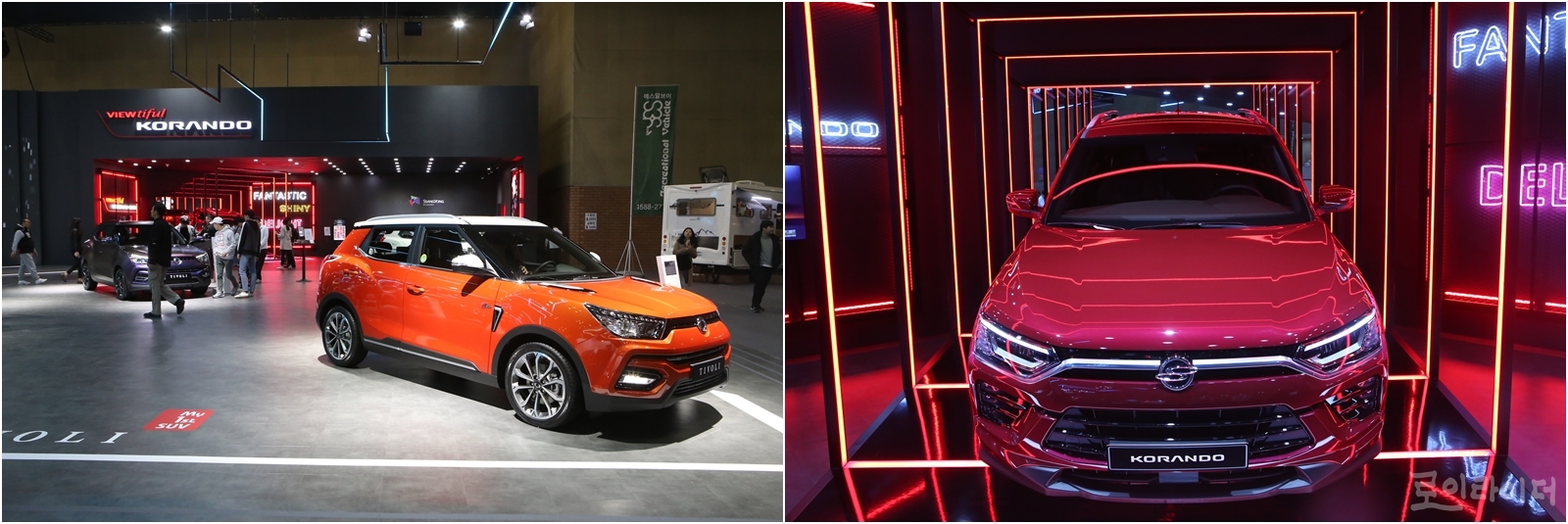 쌍용자동차 부스는 코란도 모델들이 제일 먼저 반겨주었습니다. 안쪽에 "VIEWtiful KORANDO" 라고 의미심장하게 시뻘건 조명에 넣어놓은 코란도가 한대 있었습니다. 뭘 의미하는지는 모르겠지만.. 일단 특이하니 한장 찍어줍니다.