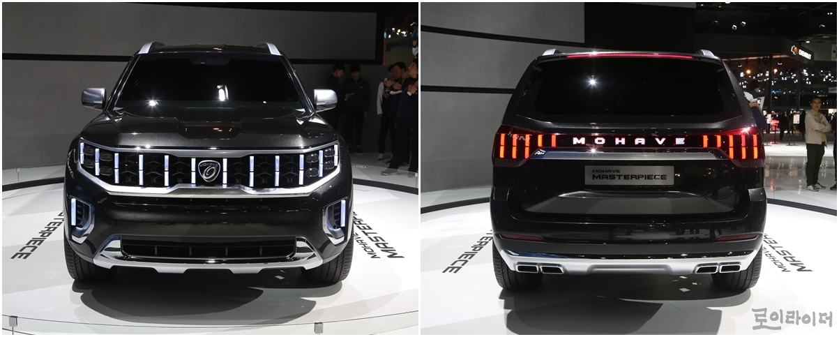 기아자동차 부스 중심에는 '모하비 마스터피스(MOHAVE MASTERPIECE)' 차량이 있었습니다. 차량 디자인 선들이 쌍용 SUV를 연상시키기도 했고, 첫인상이 너무 투박해서 별로였는데 앞/뒷모습이 볼수록 매력있는것 같습니다. 요즘 현대/기아차 디자인이 대부분 그런 느낌입니다(볼매). 현재 모하비 모델이 디자인적으로 너무 훌륭하지만, 이제는 풀체인지 모델이 나올때가 된 것 같습니다. 과연 컨셉트카의 느낌을 얼마나 이어받을지 너무 궁금하네요.