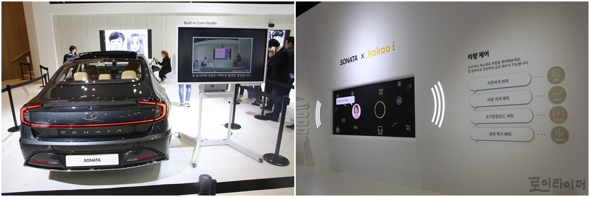 현대자동차 부스에는 쏘나타와 관련된 기능, 옵션들로 가득차있었습니다. 신형 쏘나타는 파격적인 디자인 뿐만 아니라 수많은 옵션과 최신 기술들도 모두 갖췄는데, 'Built-in Cam(빌트인캠)' 일명 순정 블랙박스는 현대에서 처음 선보인 기술입니다. 심지어 작년에 출시한 팰리세이드에도 적용되지 않았습니다. 직접 본 빌트인캠 화질은 애프터마켓 블랙박스들과 견주어도 대등하거나 오히려 더 우월한 수준이지 모자란다고는 생각되지 않습니다. 오히려 10.25인치 내비게이션을 통한 실시간 영상 확인, 무선으로 영상 공유하기 등 기능적인 면에서 훨씬 편리해보였습니다. 저라면 이 옵션은 반드시 추가할 것 같네요.