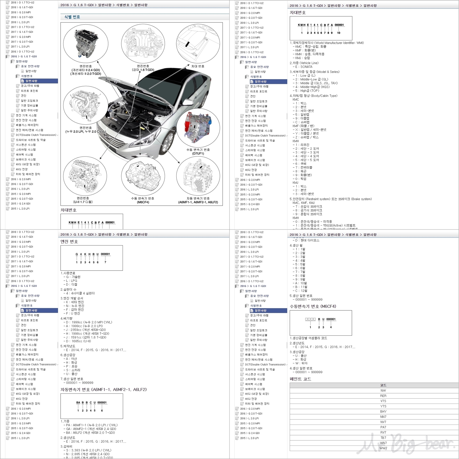 겨우 첫번째 페이지에 들어왔을 뿐인데 엔진/변속기 번호 뿐만 아니라 번호의 각 자릿수별 의미와 페인트 코드까지 나와있습니다. '이런걸 진짜 다 알려줘도 되는건가?' 라는 의문이 들 정도로 내용이 너무 상세하고, 이런걸 캡쳐해서 올려도 되는지 겁먹은채로 글을 작성중입니다. 아무튼 일반사항에는 일반사항인데 정말 일반적인 수준을 뛰어넘는 일반적이지 않은 내용들이 디테일하게 담겨있습니다.