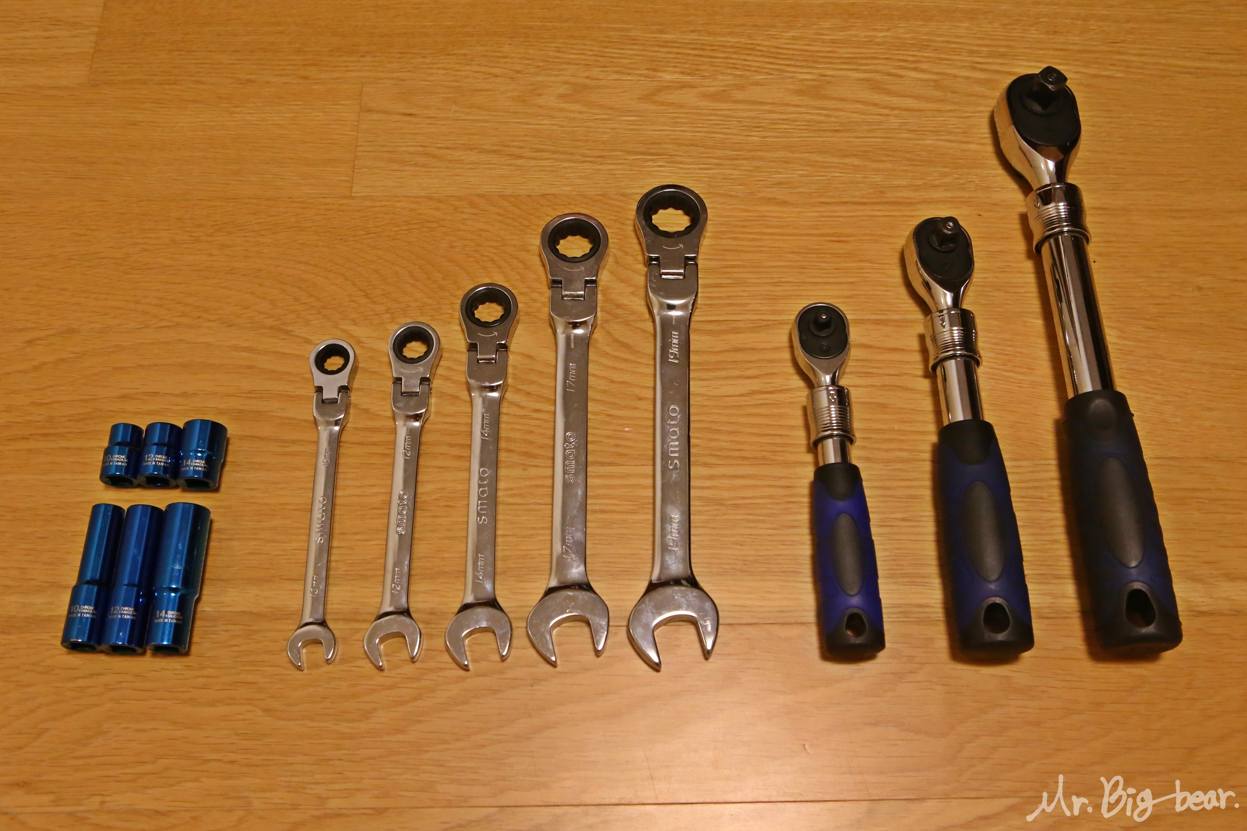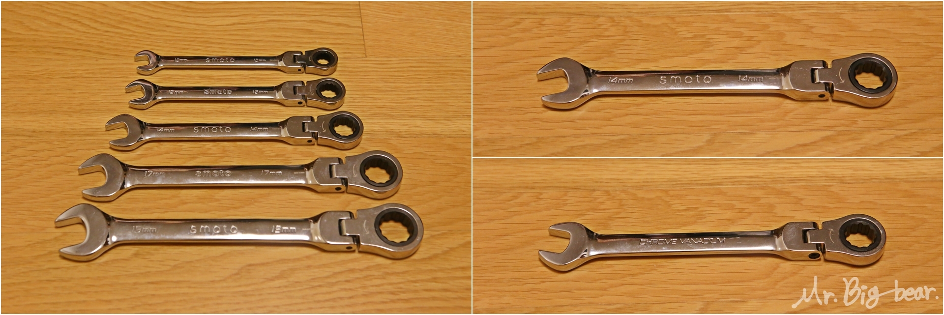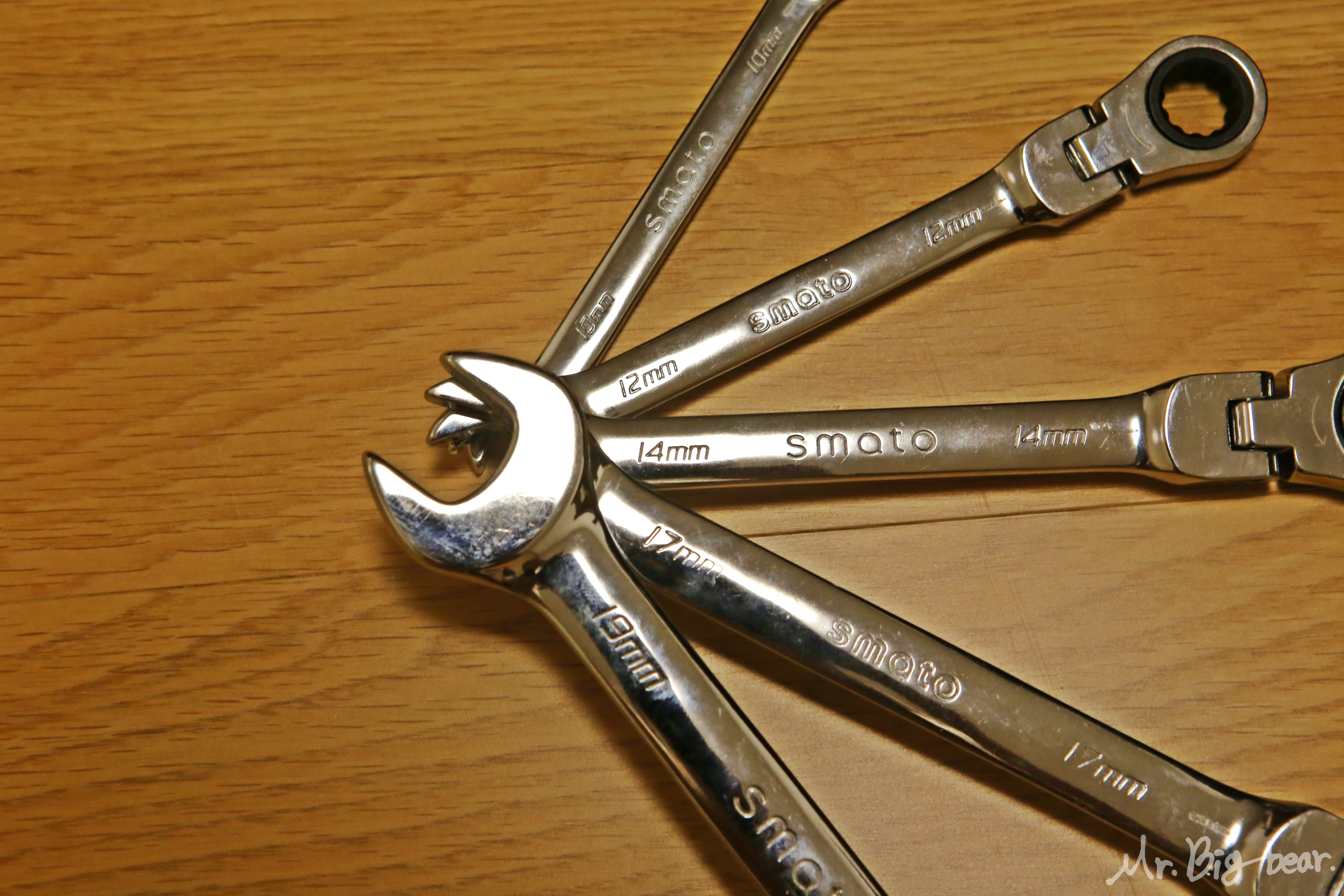 소켓과 마찬가지로 스패너도 모든 크기(mm)를 다 사고 싶지만 현실과 타협해야 합니다. 제 차량이 LF 쏘나타고, 현대/기아자동차는 볼트/너트의 규격이 대부분 동일하기 때문에 10mm, 12mm, 14mm, 17mm, 19mm 다섯가지만 구매했습니다. 소켓과 스패너를 구매하시는 분들은 검색을 통해 본인 차량에 자주 쓰이는 규격을 참고하시어 효율적으로 구매하시기 바랍니다. 마찬가지로 스패너도 브랜드가 정말 다양하지만, 가성비 갑 스마토(SMATO) 제품으로 좋은 가격에 구매했습니다.